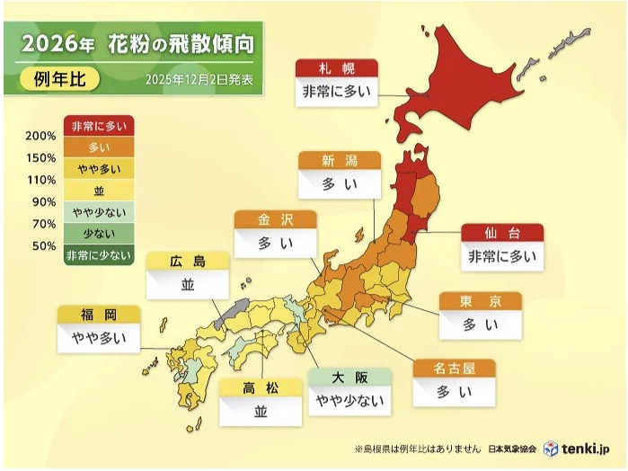 また2月から花粉症が始まります。今年の福岡の花粉は、例年よりも「やや多い」そうです。